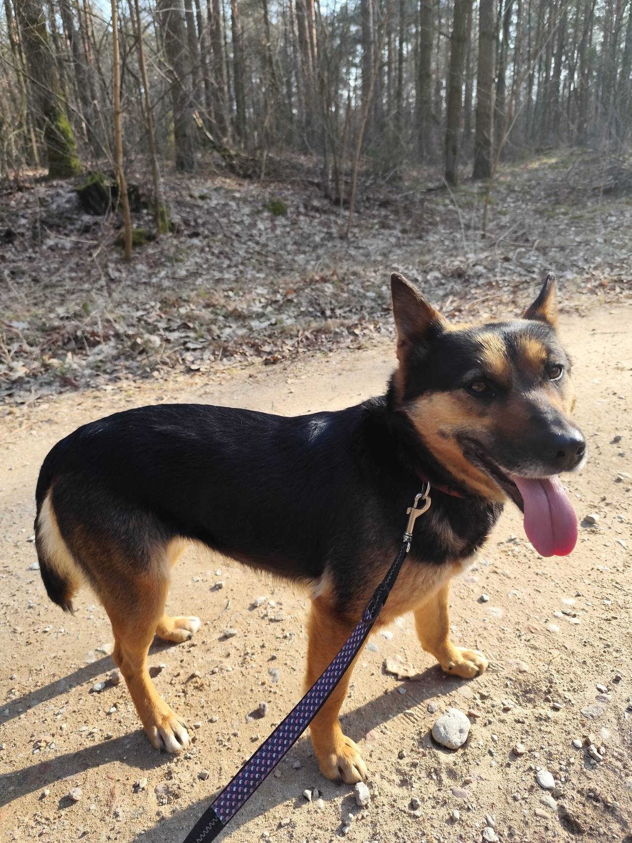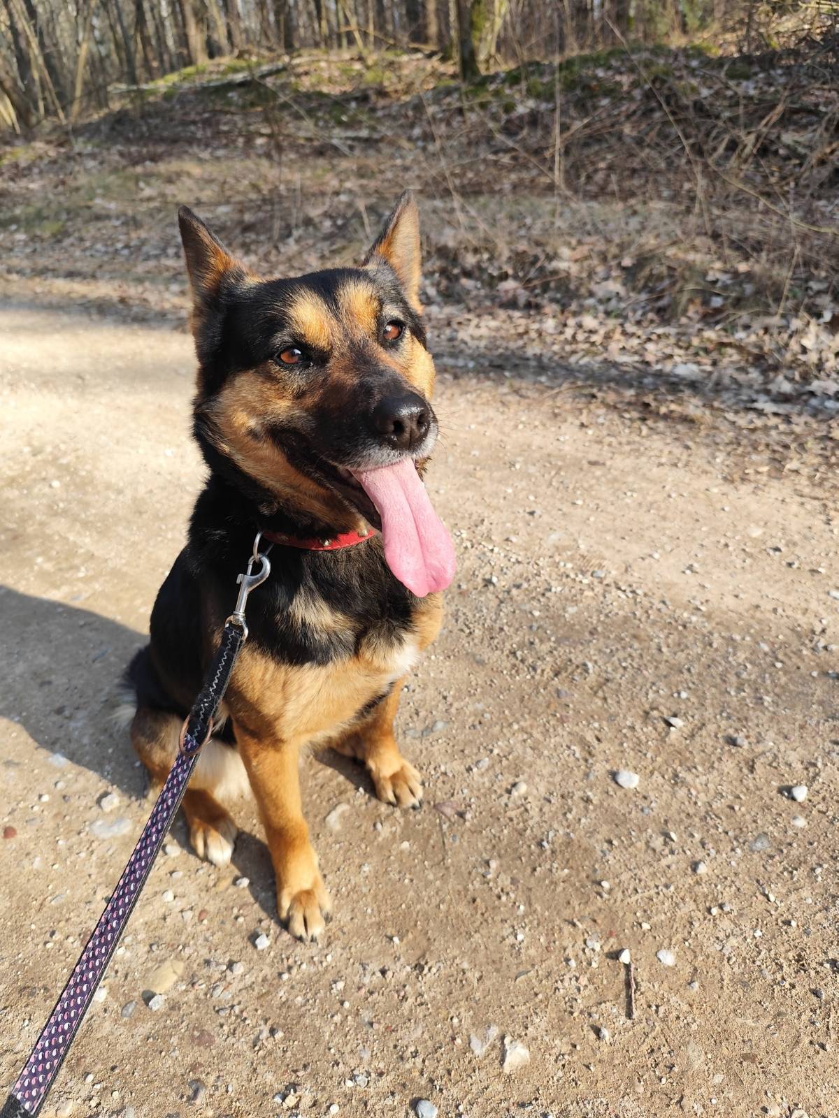 Od pierwszych chwil widać, że ma ogromny potencjał na wspaniałą towarzyszkę – pięknie chodzi na smyczy, z zaciekawieniem eksploruje otoczenie i powoli nabiera odwagi.